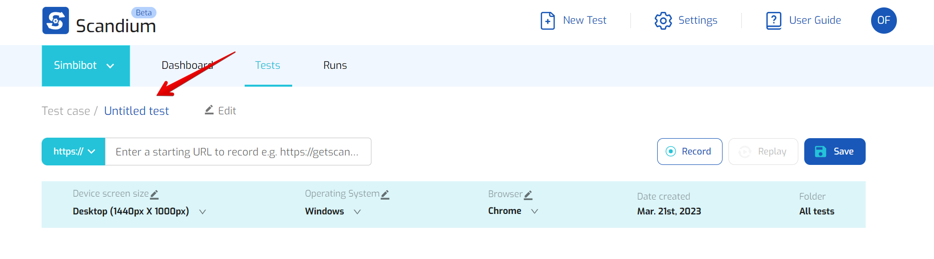 Create a new test: In your project dashboard, click on the "New Test" button to create a new test case.